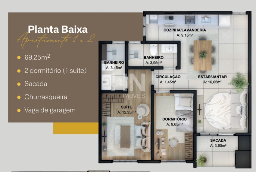 Para famílias ou quem precisa de mais espaço = apartamento de 2 dormitórios: