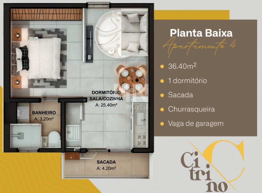 Para quem busca praticidade e investimento = apartamentos de 1 dormitório (perfeitos para solteiros, casais jovens, estudantes ou investidores):